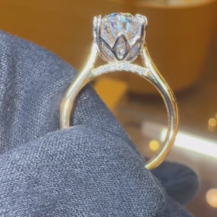 2.5 ct Oval Lotus Design Engagement Ring | 18K White and Yellow Gold