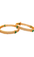 22K Gold Emerald CZ Designer 2 Pieces Set of Screw Bangles