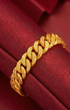 A bold men’s bracelet crafted in 22K gold, featuring wide Cuban style links with diamond cut detailing for extra shine and texture. Made with a hollow construction for a lighter, comfortable feel, and finished with a secure hook clasp for easy everyday wear.