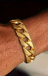 A bold men’s bracelet crafted in 22K gold, featuring wide Cuban style links with a textured finish that adds depth and character. Designed with a secure box clasp, it offers a confident, statement look with a comfortable fit for everyday wear.