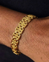 This 22k gold men’s bracelet features a structured, multi-row link design that combines smooth polished surfaces with finely textured details. The alternating finishes create depth and reflect light with every movement, giving the bracelet a strong yet refined presence on the wrist. Designed with a balanced profile and a secure clasp, it offers everyday comfort while maintaining a traditional gold look. A versatile piece that pairs well with both casual and formal wear, showcasing classic craftsmanship in rich, high-purity gold.