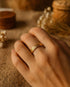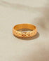 A 22K gold band with a soft, warm glow and a detailed diamond cut pattern that wraps around the center. The textured finish adds sparkle without stones, catching the light with every movement. Finished with a smooth interior for comfortable everyday wear, it is a beautiful piece on its own or stacked with other rings.