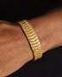 This 22k gold men’s bracelet features a bold, structured link design highlighted by precision-cut diamond facets that catch and reflect light with every movement. The alternating smooth and textured surfaces create a striking contrast, giving the bracelet depth and a refined brilliance without overpowering the design. Crafted to sit comfortably on the wrist, it offers a confident presence that works effortlessly for both daily wear and special occasions. A timeless piece that celebrates high-purity gold and meticulous craftsmanship, designed for those who appreciate strong lines, clean symmetry, and enduring elegance.