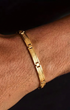 A refined men’s bracelet crafted in solid 22K gold, featuring elongated rectangular links engraved with a classic modern motif. Finished with a secure clasp, it offers a sleek, structured look that balances tradition with modern style for everyday wear.