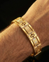 A refined men’s bracelet crafted in solid 22K gold, featuring structured rectangular links with intricate cutout motifs and subtle two tone detailing. Finished with a secure hook clasp, it offers a balanced blend of traditional design and everyday elegance.