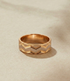 This 22K gold band has a bold, geometric feel. The centre is finished with a soft, brushed texture, while the pattern is cut in crisp chevron lines that wrap around the ring and catch the light as you move. It’s structured and modern, but still warm and classic thanks to the rich gold tone.