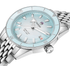 Precision meets style in the Captain Cook — a timepiece built for those who demand performance in every setting. The 39 mm polished stainless-steel case is paired with a polished stainless steel turning bezel and a polished light blue ceramic insert with silver metallised markers.