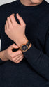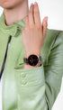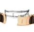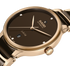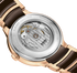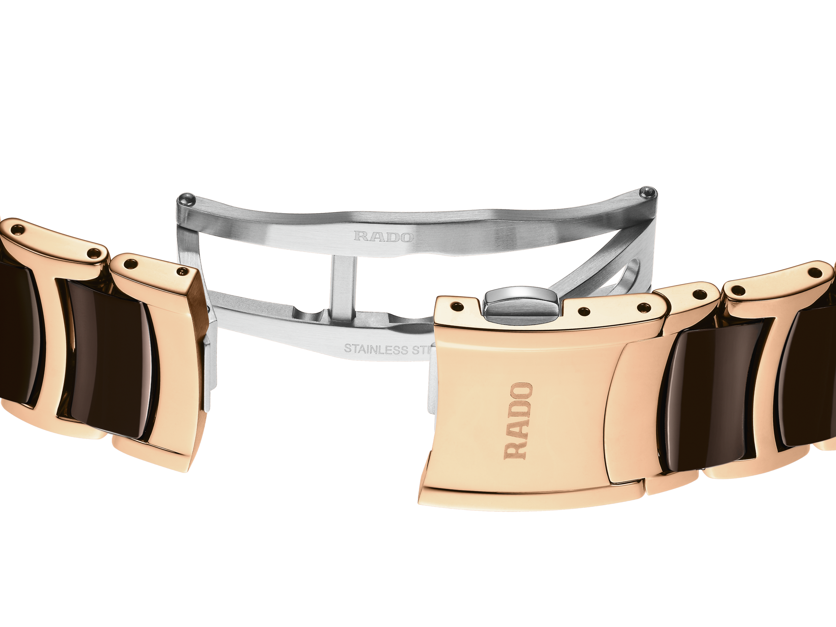 The classic Centrix Automatic Diamonds watch has been reworked not only technically, but also aesthetically. The modified model has a rounded sapphire crystal that extends all the way to the edge, as well as a curved case blending with the curved crystal edge. The overall appearance of this iconic timepiece is completed with adjusted case lugs and a bracelet made of polished rose-gold-coloured PVD-coated stainless steel with brown high-tech ceramic middle links.