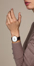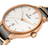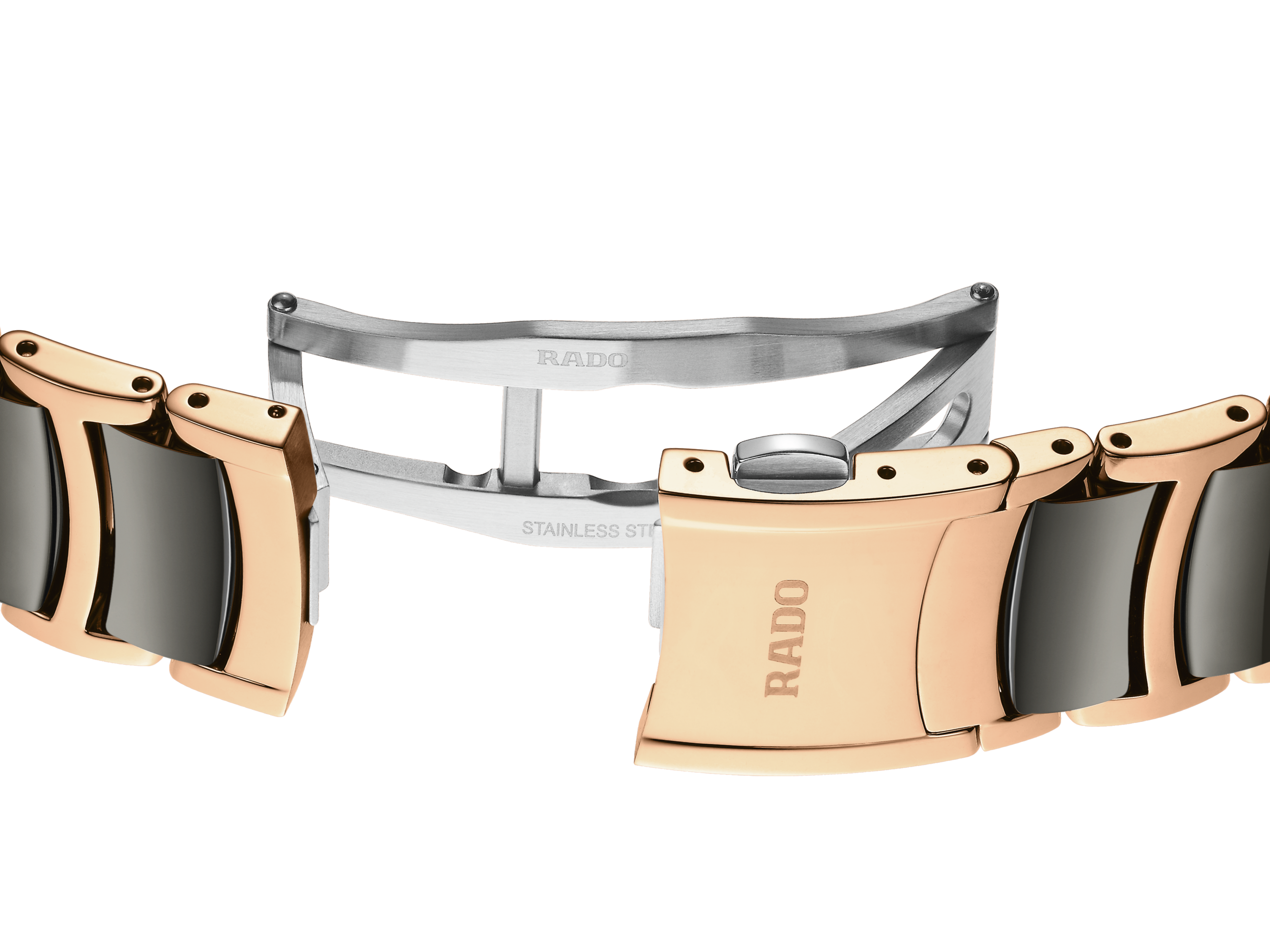 The classic Centrix Automatic has been reworked not only technically, but also aesthetically. The modified model has a rounded sapphire crystal that extends all the way to the edge and a curved case blending with the curved crystal edge. The overall appearance of this iconic timepiece is completed with adjusted case lugs and a bracelet made of polished rose-gold-coloured PVD-coated stainless steel with plasma high-tech ceramic middle links.