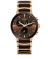 Experience the harmonious blend of artistic expression and refined design with the Centrix Chronograph. Crafted in stainless steel and treated to a rose gold-coloured PVD coating, the 41 mm case is crowned with a curved sapphire crystal with anti-reflective coating on both sides, ensuring impeccable readability. Beating at its heart, the Calibre R312 quartz chronograph sets a new standard of precision.