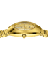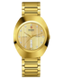 The unique DiaStar Original has a diameter of 38 mm and is water resistant down to 100 m. Framed by an ultra-shiny yellow gold couloured Ceramos™ coiffe with polished angles and detailing set over a matching, yellow gold couloured PVD coated stainless-steel case, this beautiful watch is rounded off with a parallel-stripe-faceted sapphire crystal. Specifications include a gold brushed dial with two directions, yellow gold coloured hands with white Super-LumiNova®, and a white day date display. The dial features eleven full cut diamonds, emphasised with the dark grey coloured printed “jubilé” logo. The Rado R764 automatic movement offers 80 hours of power reserve, with an antimagnetic Nivachron™ balance spring. The bracelet is made of yellow gold PVD coated polished and brushed stainless steel.