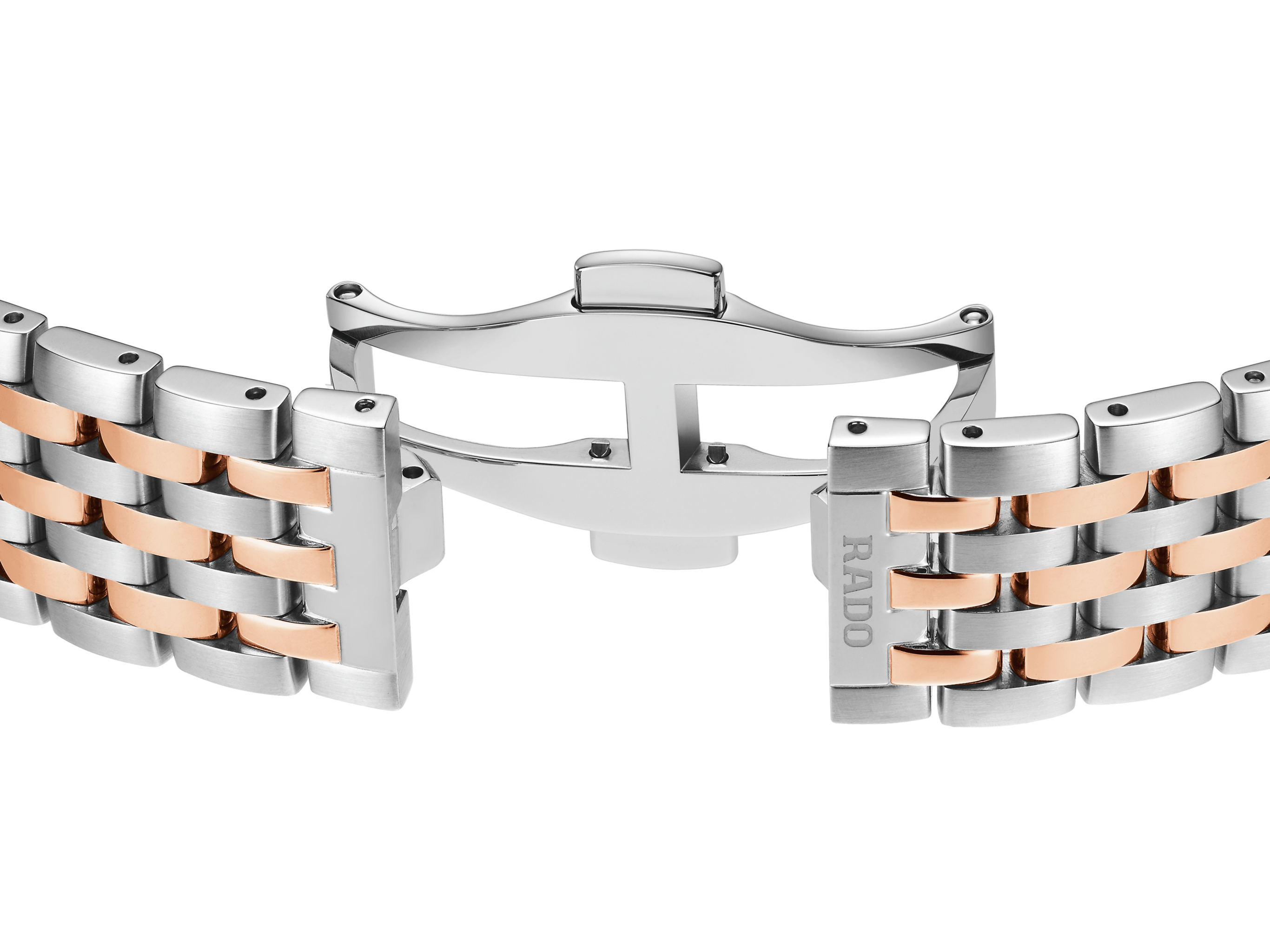 Discover the timeless blend of Swiss precision and elegance with the iconic Rado Florence. The 39 mm case is crowned with an edge-to-edge sapphire crystal, featuring a metallised edge that matches the stainless steel case. This sapphire crystal functions both as the protective front and as a bezel, seamlessly integrated into the case to enhance the Florence iconic refined profile. Serving as a theatre scene, the grey dial showcases extreme attention to detail with its sophisticated embossed pattern.