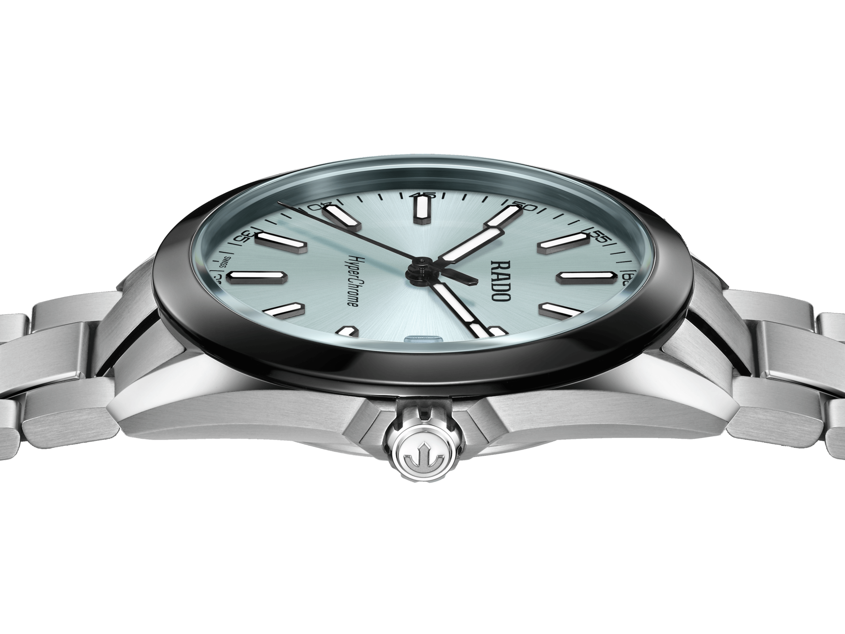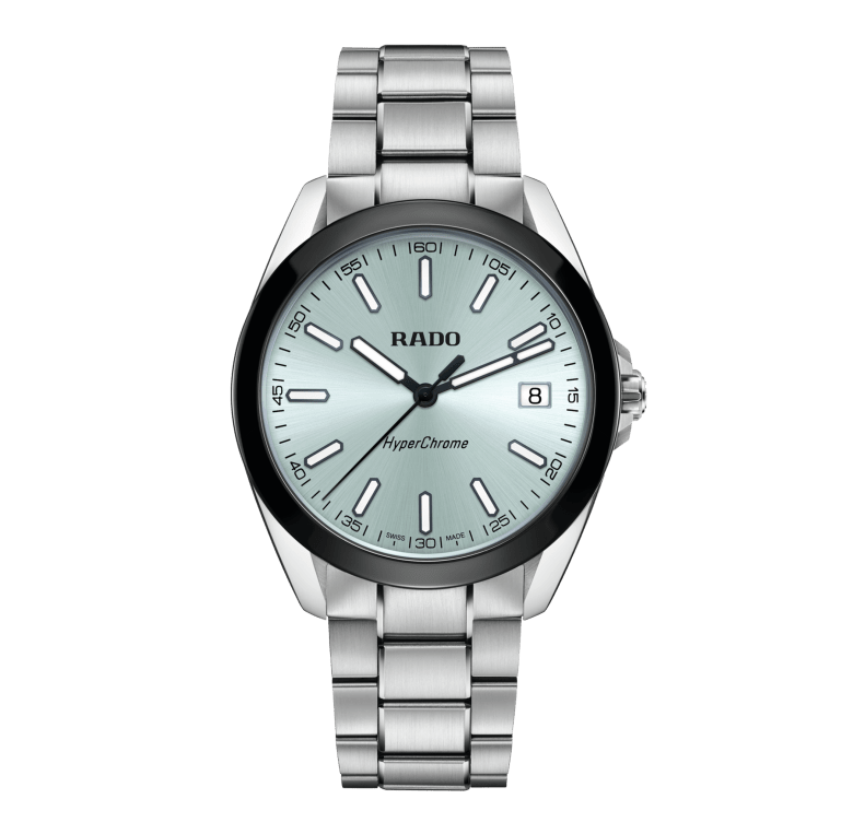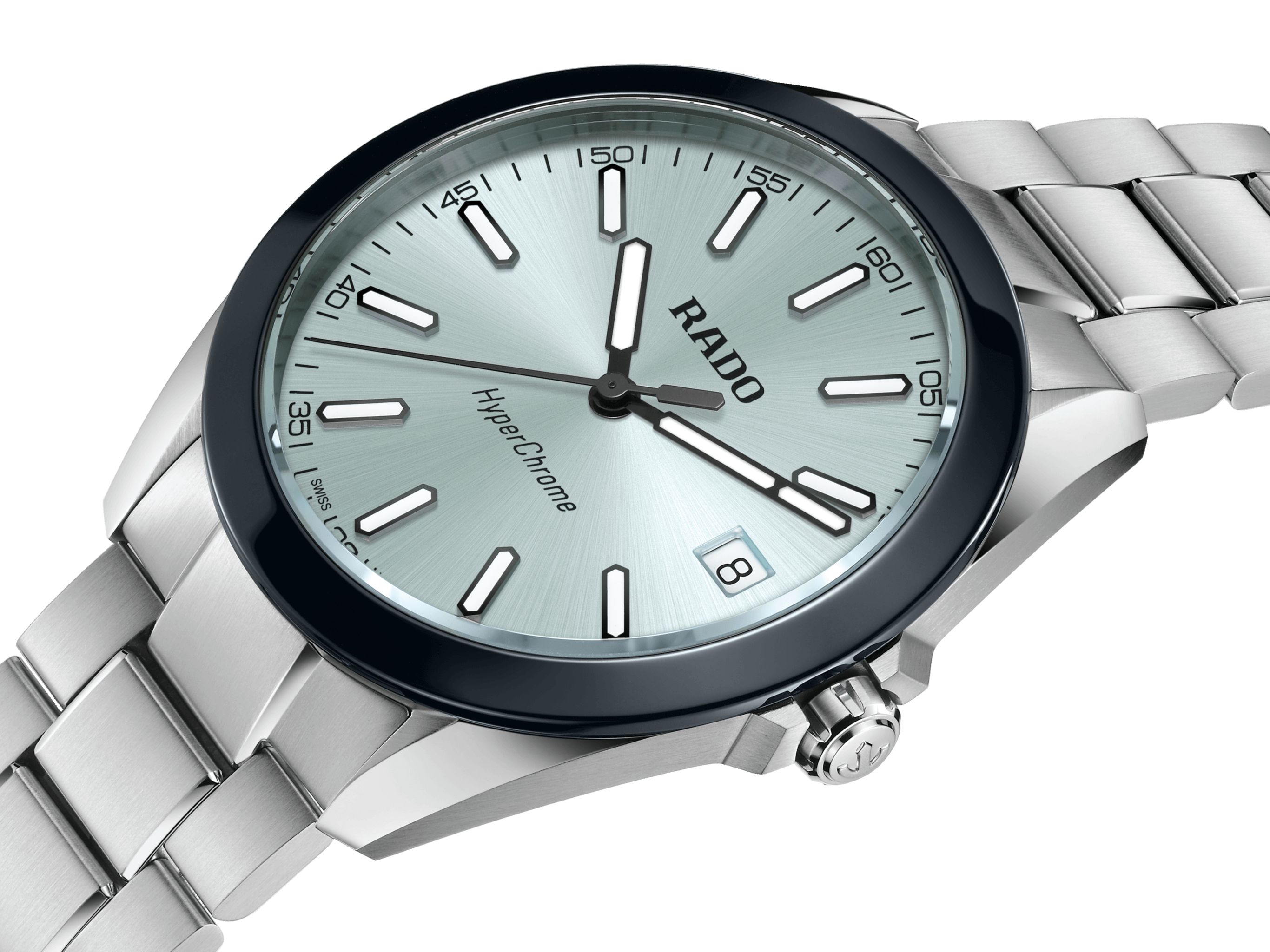 The HyperChrome Quartz is a contemporary expression of precision and material mastery, combining advanced watchmaking technology with a bold and enduring design. The case, sculpted from polished and brushed stainless steel, is encircled by a polished black high-tech ceramic bezel—an elemental combination of strength and refinement.