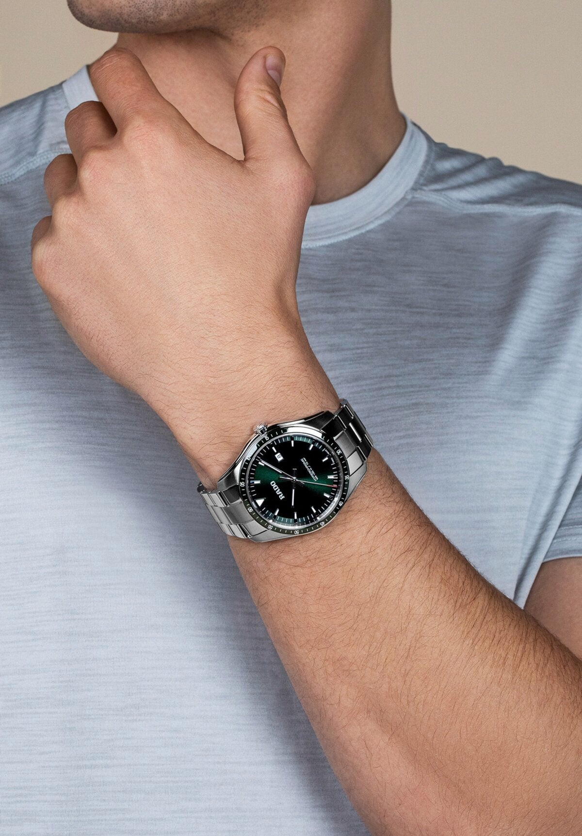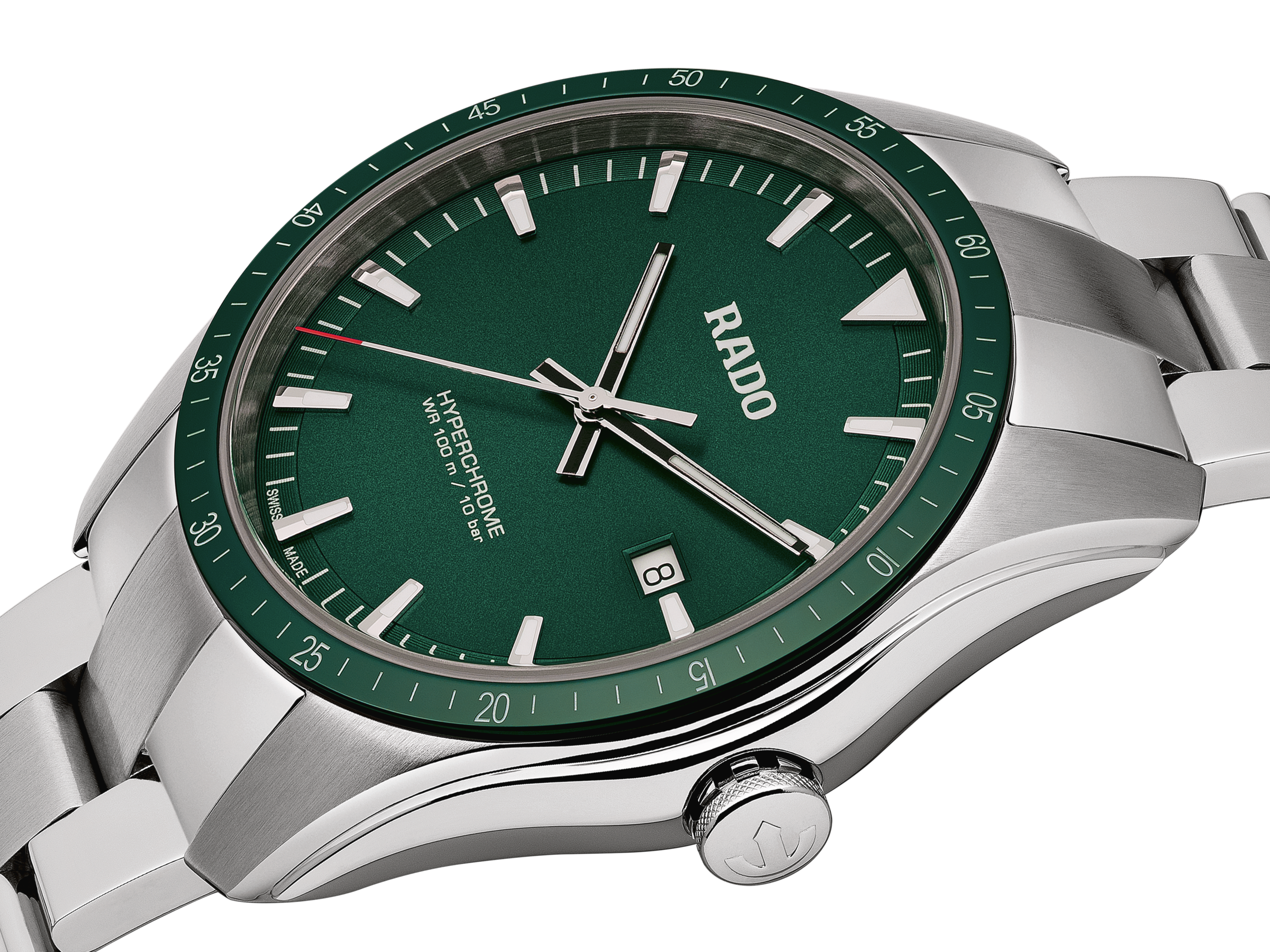 Dynamic, sleek and sporty, the HyperChrome Quartz is designed to look good dressed up or dressed down. Featuring a bezel available in a range of high-tech ceramic colors: blue, green, black, plasma, or rose gold Ceramos™, the HyperChrome Quartz is as versatile as it is stylish.