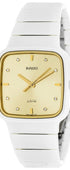 Rado Jubile Gold Dial Ceramic Band Ladies watch features a 36 mm white ceramic case with a gold tone dial along with a scratch-resistant sapphire crystal and gold tone hands.