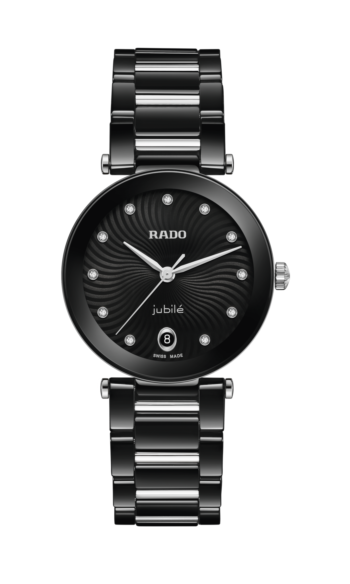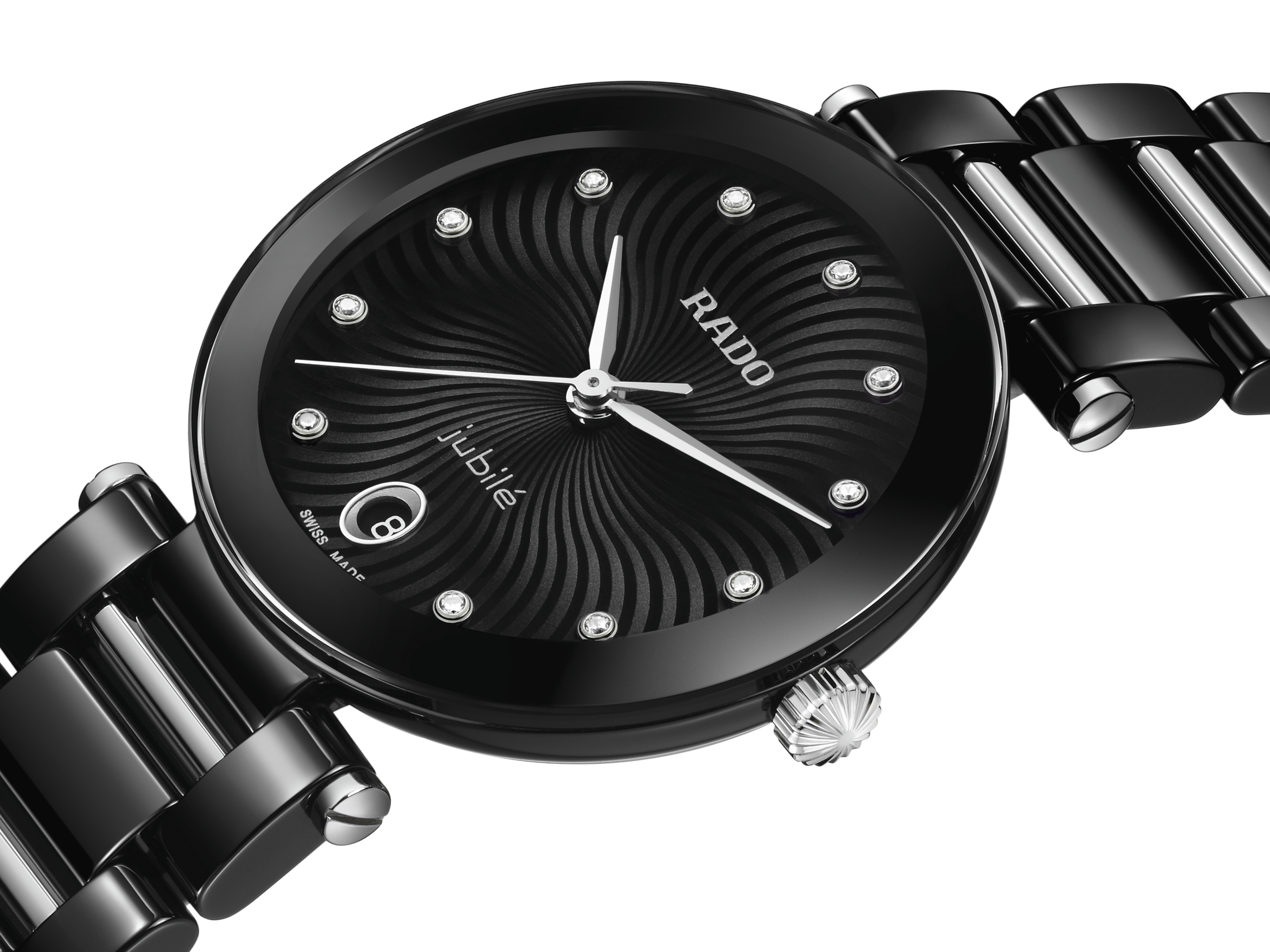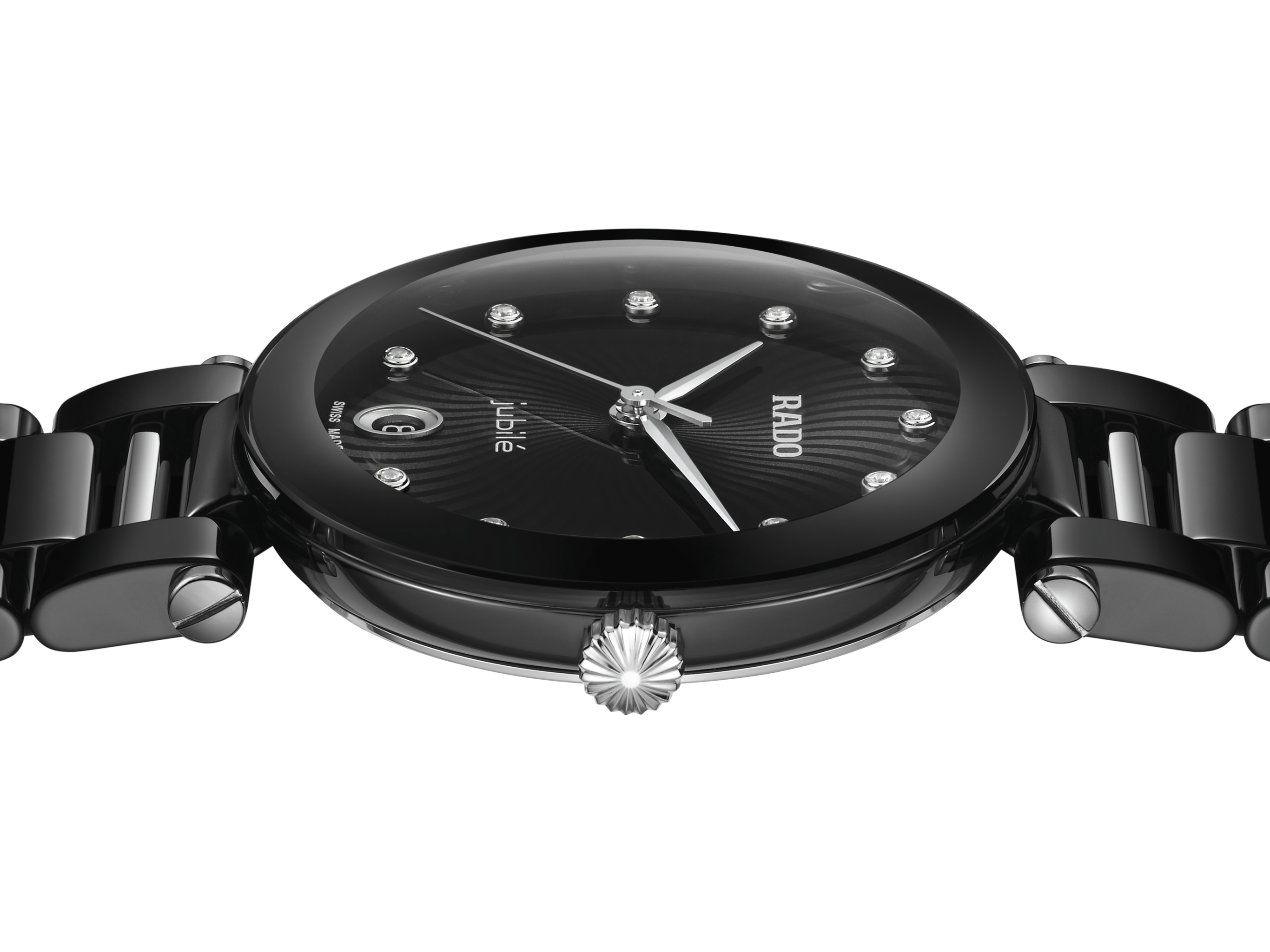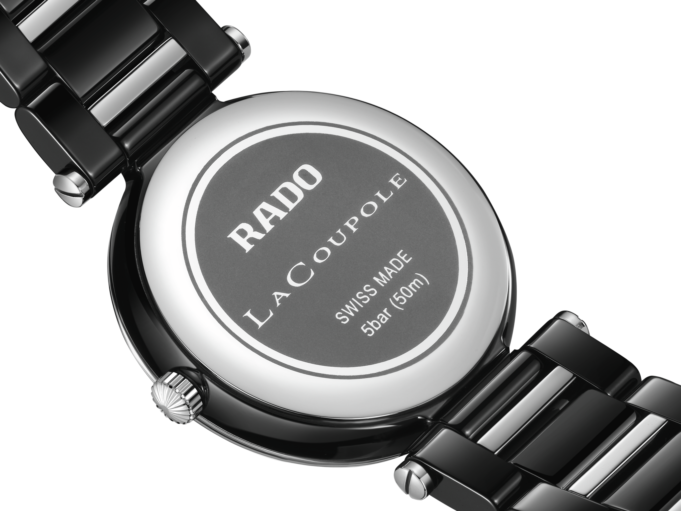 LaCoupole stands as a tribute to the icons of yesterday, redefined for today’s sophisticated wearer. An expression of refined glamour, engineered with the precision and innovation only Rado can offer. Its 31 mm monobloc case in polished black high-tech ceramic is crowned by a domed sapphire crystal, elevated by a black & silver coloured metallised border.