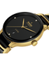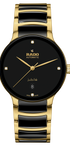 The classic Centrix Automatic Diamonds watch has been reworked not only technically, but also aesthetically. The modified model has a rounded sapphire crystal that extends all the way to the edge, as well as a curved case blending with the curved crystal edge. The adjusted case lugs and the bracelet made of polished yellow gold-coloured stainless steel with black high-tech ceramic middle links complete the overall appearance of this iconic timepiece.