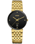 The harmonious design of the Rado Florence Classic calls to mind the elegant domes and towers of the city from which the collection takes its name. With quality quartz movements and innovative Rado edge-to-edge metallised sapphire crystal, these are Swiss-made pieces designed to stand the test of time. Rhodium-plated hands glide above four full-cut diamonds set as indexes at hours 3, 6, 9 and 12. Their sparkling presence is underscored and celebrated in the new Florence Classic collection by the return of the famous Jubilé logo.