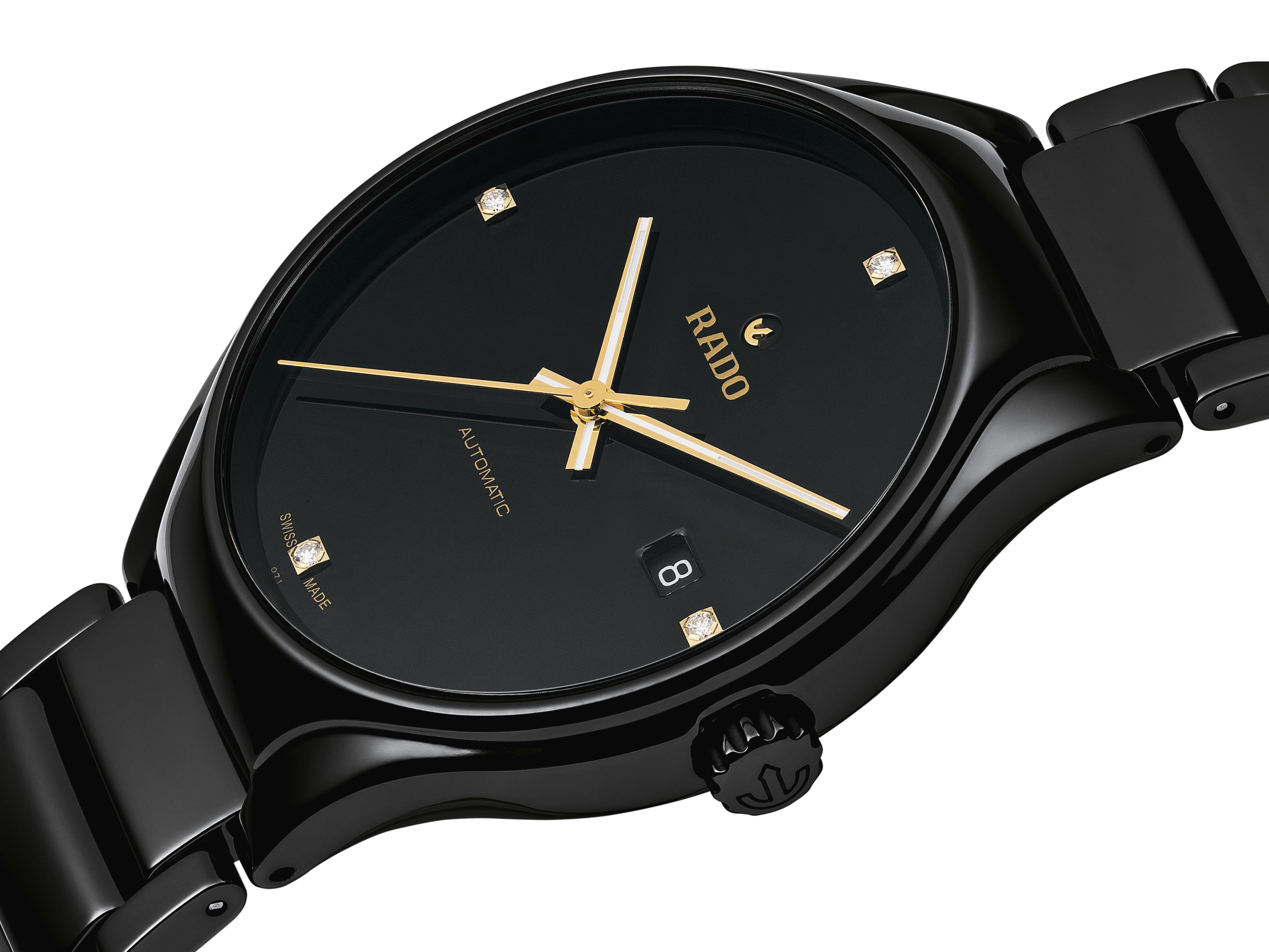 Reimagined for modern wearers, redesigned, but reliably and distinctively Rado, the True is a perfect, polished package with a quality Swiss automatic movement and the added allure of diamonds. It will keep its shine for years to come while also offering lightness and wearer comfort. This is True.