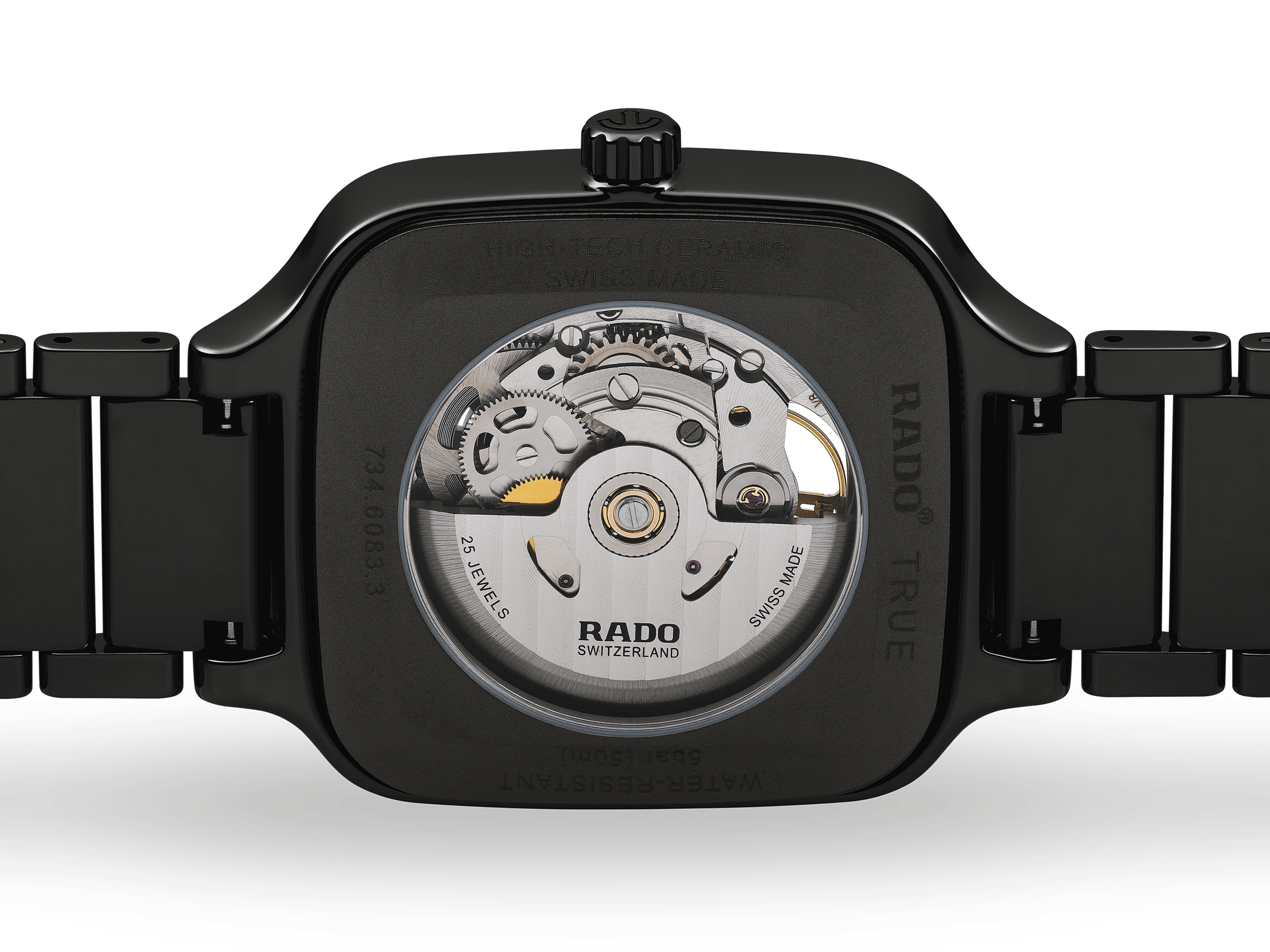 At Rado, we made our name producing square high-tech ceramic watches. The True Square is a new take on an iconic Rado shape. Our first watch made using a square injected monobloc high-tech ceramic case, the True Square is light, scratch-resistant and comfortable to wear. Distinctive and design-led, the Rado True Square Automatic Open Heart is the shape of things to come.
