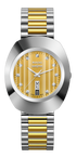 Hardmetal case with a two-tone (silver-tone and yellow gold PVD) stainless steel bracelet. Fixed stainless steel bezel. Yellow gold dial with luminous silver-tone hands and diamond hour markers. Minute markers around the outer rim.